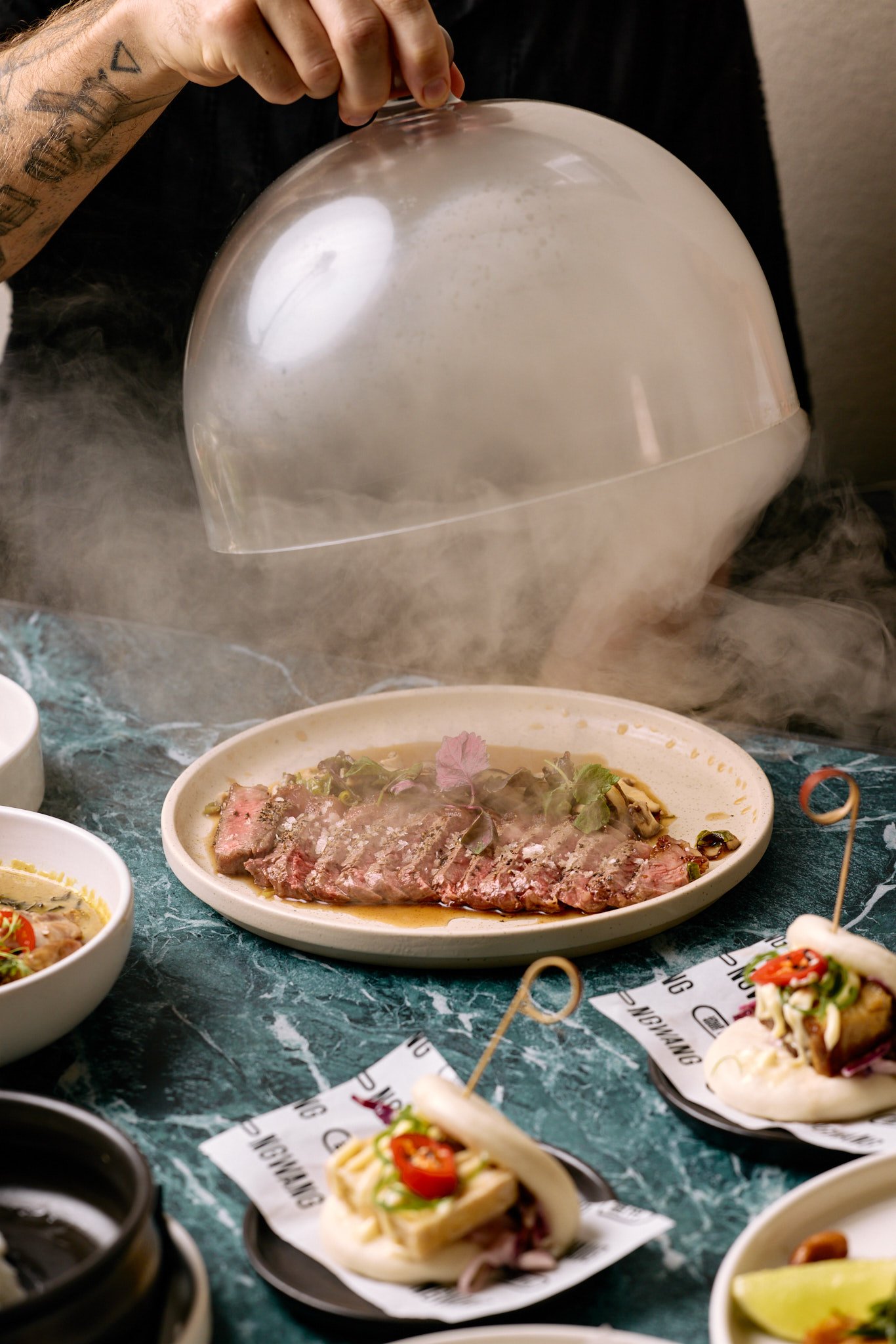 black angus pure bred — smoked garlic soy sauce, mushroom relish